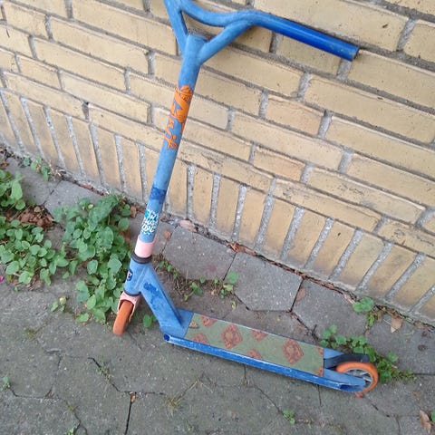 Fint løbehjul til lidt større børn med fod og håndbremse.