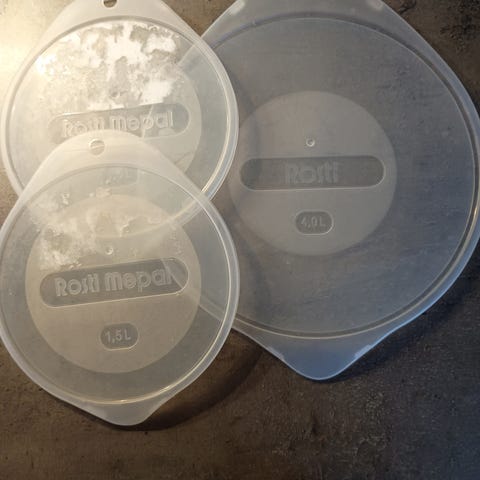Rosti Mepal camping service. 4 stk. lyseblå dybe tallerkner mærket D.215. Har lette overfladiske ridser.