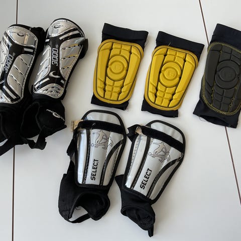 Mørkeblå benskinner fra G-FORM er rigtig gode til at spille fodbold i da de bare sender godt rundt om benet af sig selv. Sælger dem pga. jeg ikke længere kan passe dem mere. De er ikke brugt mange gange.
