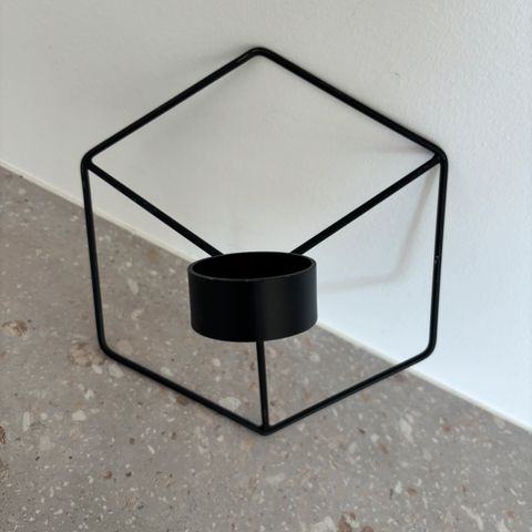 Smart fyrfadslysestage i sort metal. Brugt og har også lidt støv efter bare at have stået i mit skab. Kender ikke mærket, men minder om en serie fra mærket Menu.