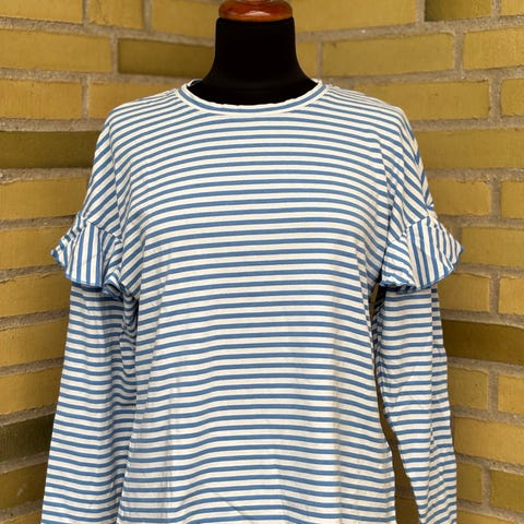 Sød hvid bluse fra mærket H&M I str. 38. Brugt få gange. Med off shulder of lange ærmer, med en masse flæser.
