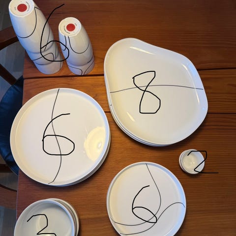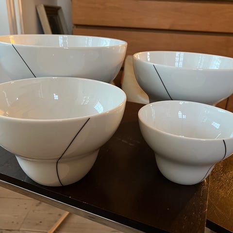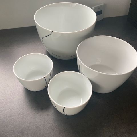 Porcelæn, Skåle, Menu sort kontur, 6 skåle i forskellige størrelser. Aldrig brugt. Ingen skår eller misfarvning. Fra ikke rygerhjem.