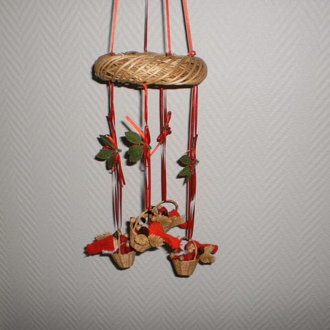 Stor ældre jule uro - fra butik?, Vintage jule uro i hård karton , krans øverst med tre ting under