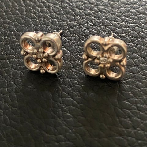 Ørestik med rose motiv og rosa i farven. - kunne måske være koral - Stik og låse er i forgyldt. - kan sendes for 47 kr