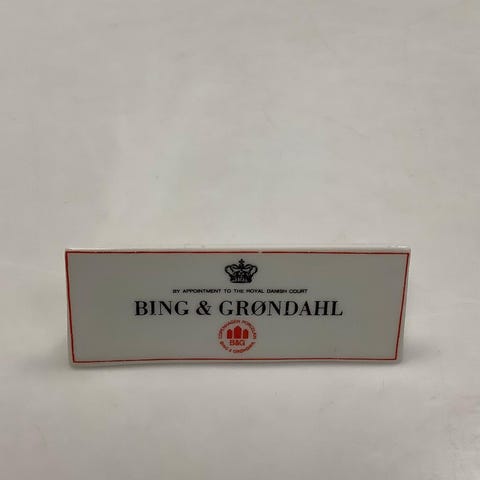 Bing & Grøndahl Forhandler skilt i Bisque. Måler 10cm. Denne vare kan afhentes i følgende butik: Lyngbyvej 155, 2100 Kbh. Ø