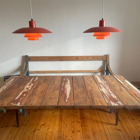 Sælger dette originale, snedkerlavet spisebord. Det er lavet af skibsplanker. Jeg har været utrolig glad for udtrykket, men sælger da jeg har brug for en forandring i stuen.