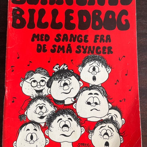 En lillebitte mand. Tegninger af Jørgen Clevin. Sangen kan bruges som sangleg og på indersiden af omslaget er lavet et forslag til hvordan sanglegen kan udføres. Bogen fremstår brugt og med ælde men fin.
