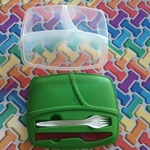 Helt ny , ubrugt salat "madkasse" , med gaffel & dressing beholder i et .