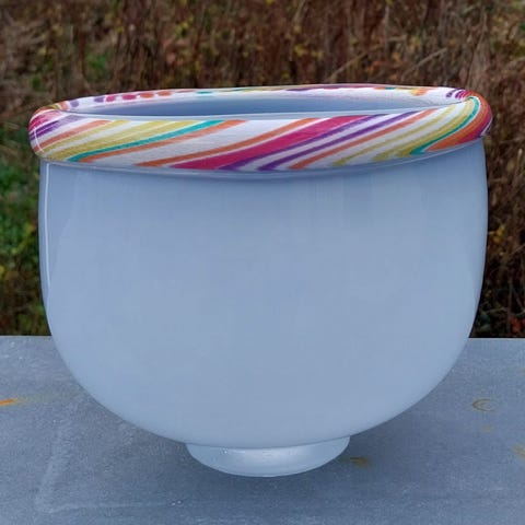 Smuk mundblæst glas-skål/-potte. Signeret.