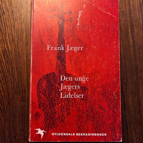 DEN UNGE JÆGERS LIDELSER, Frank Jæger, genre: biografi, Førsteudgaven fra 1953. Udgivet på forlaget WIVEL. Hft. 121 sider.