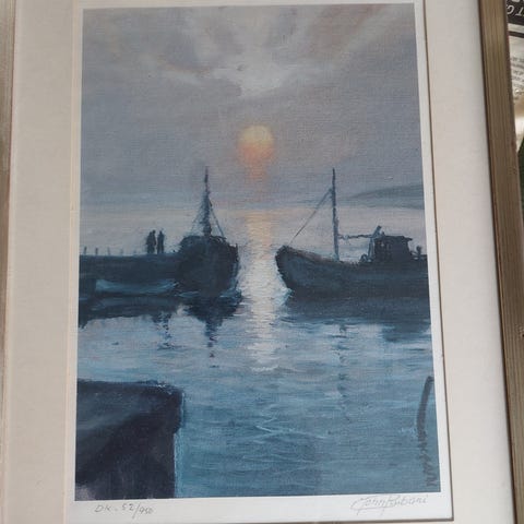Indrammet med passepartout, motiv 34 x 45 cm.