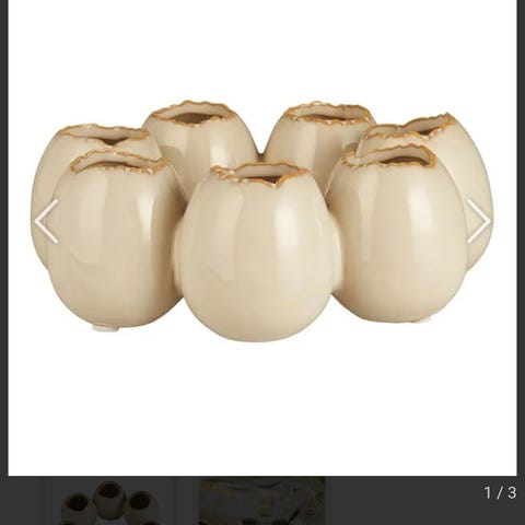 Porcelæns æggeformet vase, Hvid porcelænsvase, der minder lidt om et æg, med hul i skallen.
