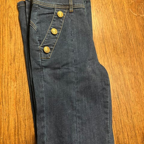 Flotte mørkeblå jeans med lidt svaj og guldknapper