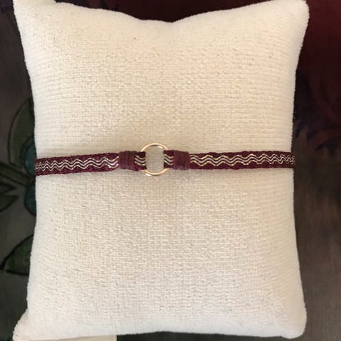 Armbånd, LeJu, Håndlavet fra LeJu London. Vinrød med rubinrøde sten. Måler 4 mm i bredden. Kan justeres i str. fra 16cm til 25 cm.