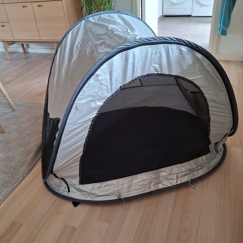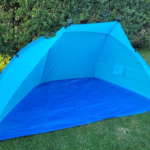 Nyd både skygge og læ inde i dette soltelt med UV 50+ solbeskyttelse! Teltet fungerer som et skyggetelt og beskytter mod solens UV-stråler med UV-beskyttelse 50+. Stoffet reflekterer en del af solens skadelige stråler væk, samtidig med at det giver en lavere temperatur i skyggen. Perfekt til ture til stranden, parken eller i haven med børn og babyer. Solteltet beskytter mod solens skadelige UV-stråler og giver læ for vind og sandfygning på stranden. I solteltets nedre kant er der løkker til at fastgøre teltet i sandet, med medfølgende pløkker. Teltet slås hurtigt og nemt op og ned med sin pop-up funktion, vejledning medfølger. Nem at have med på farten i medfølgende pose med hanke. Strandtelt