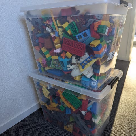 4 kasser blandet Duplo inklusiv togbane og tog med batteri