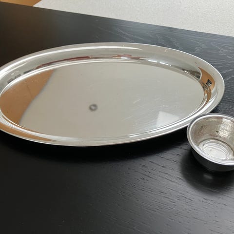 Sætter står i en fin holder i sølvplet.