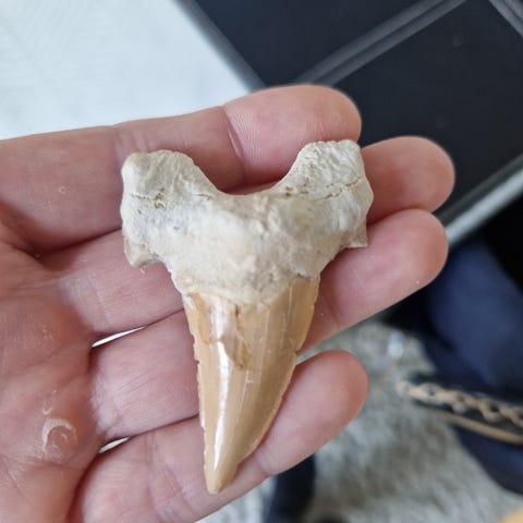 Tanden fra Stor hvid haj er fra Chile, Tigerhajen fra Marokko og Tyrehajen fra Florida.