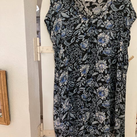 Bm ca 51, måske 52 x 2, L ca 103. Sidelommer, smock ved lænd, tynd, lidt gennemsigtig viscose.