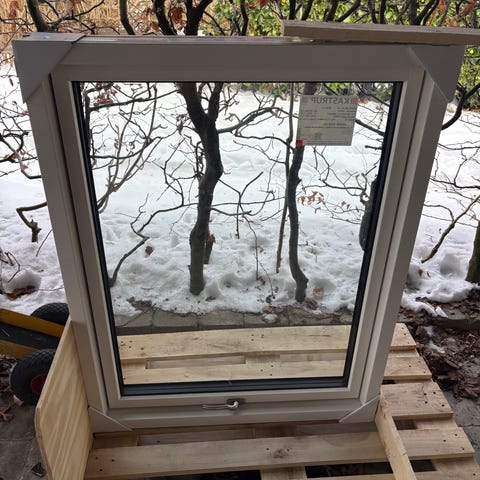 Kastrup træ/alu vindue 156*149 m bremse i håndtag m udluftning hvid ind udvendig