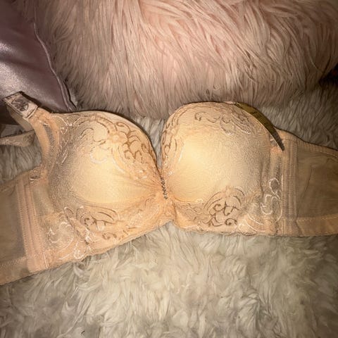 Sort bh m. hvide blonder og blomster, str. 70d