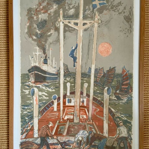 Litografi, Kjeld Ravn dalsgård, motiv: Skibe