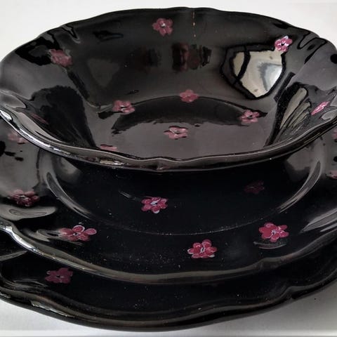 Porcelæn, Tallerkner, Alda quadro, Flade sorte tallerkner