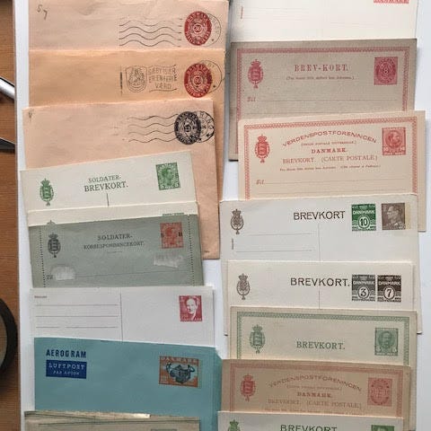 KUVERTER, KORSBÅND, X-ER, KORRESPONDANCEKORT, AEROGRAMMER, ENKELTE BREVKORT.