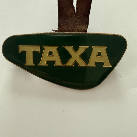 Emblemer, Guideskilt, Emblem / skilt. Rundt emblem i blå og hvid emalje samt forgyldning. Diameter ca. 3,5 cm. På skiltet står der GUIDE - turistfører eller aut. fremmedfører som det hed dengang - København og i midten er der Københavns byvåben. Iflg. turistførerforeningens jubilæumshæfte fra 1983 fik turistførerne emblemet med Københavns tårne efter bestået eksamen. Dette eksemplar er fra 1954. Mrk. Heimburger Turistførerforeningen s, Vægt ca. 12 g.