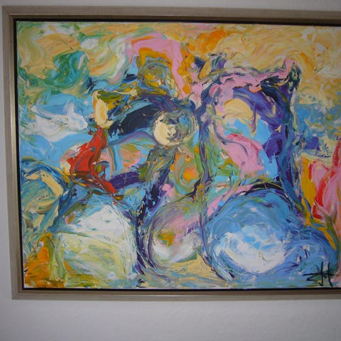 Oliemaleri, Hugo Arne Buch, b: 37 h: 46, Hugo Arne Buch Rutsker Bornholm, 1927-2008, kunst fra Bornholm,