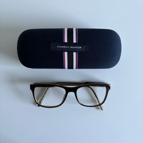 Tommy Hilfiger stel med solbrille clip-on 003 købt på SmartBuyglasses.com sælges da størrelsen ikke helt passer til mig. Aldrig benyttet.