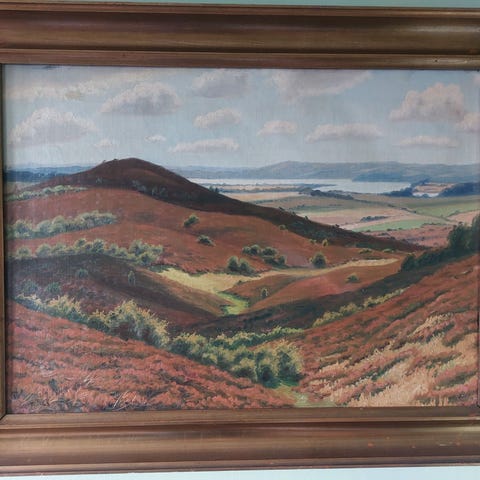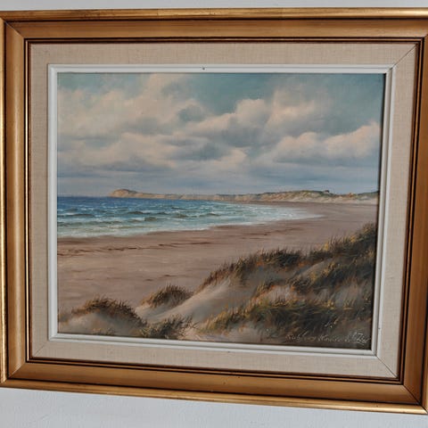Oliemaleri, Jørn Sjøholm, b: 80 h: 80, Jørn Sjøholm f. 1939 motiv fra Rutsker til Hasle, Bornholm - har ikke fix og færdig men kan godt sendes