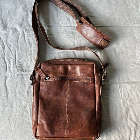 Ikke brugt Cross-over taske i ko-skind. Mål 20 bred 23 høj. Mange rum, både ud- & indvendig. Sælges under ½ pris. Jeg forstår ikke at bruge Fix og Færdig, men jeg kan godt sende.