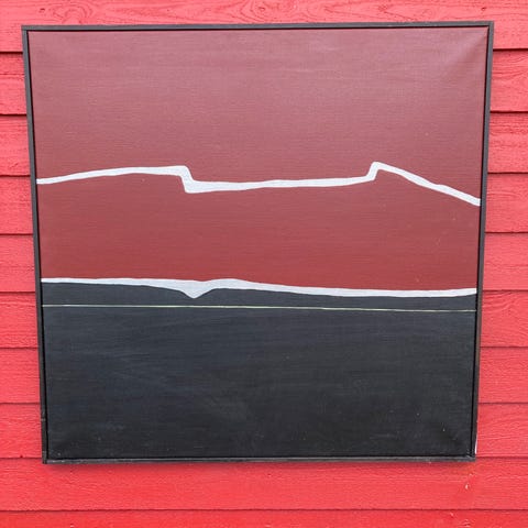 Oliemaleri, R, b: 80 h: 80, R - ikke af mig kendt kunstner, “Tråde” 80x80, maleriet på Bornholm