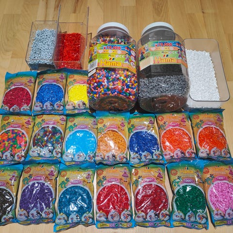 Store Hama perler, 10 plader, 2 stk samlebøger og stryge papir