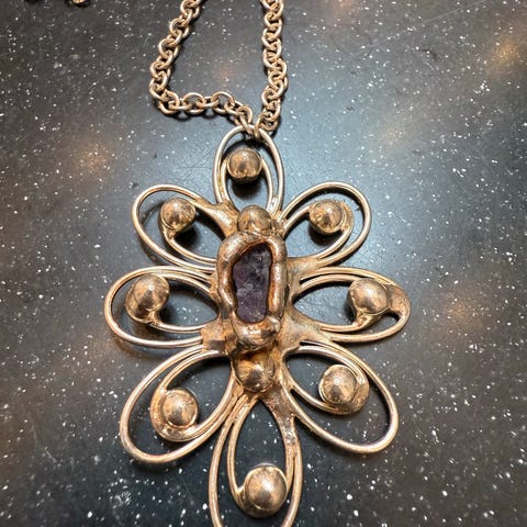 Kæmpe Retro. Den fedeste forsølvet halskæde med ametyst vedhæng. Længden er 73/74 cm