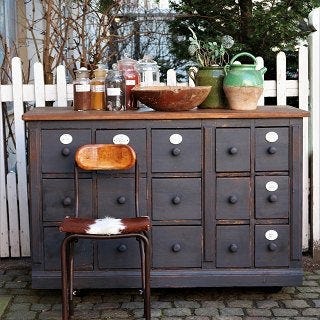 De mindre skuffer er belagt med zink.