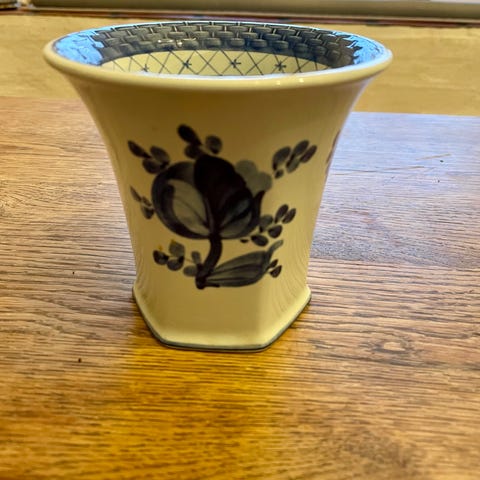 Antik Aluminia vase med blå blomst og retrofarver, nr. 546/480