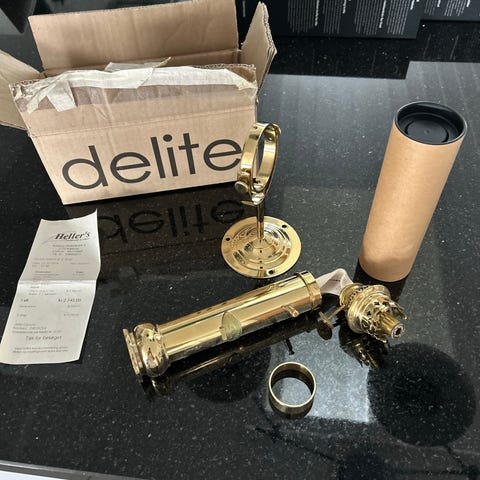 Hollandsk petroleumslampe, aldrig været monteret, få små ridser, som muligvis kan poleres væk hvis ønsket. Fast pris