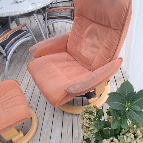 Sælger et computerborde til at sætte på siden af en Stressless-stol. Måske passer den også til andre lænestole. Har to mindre afhug i det ene hjørne.