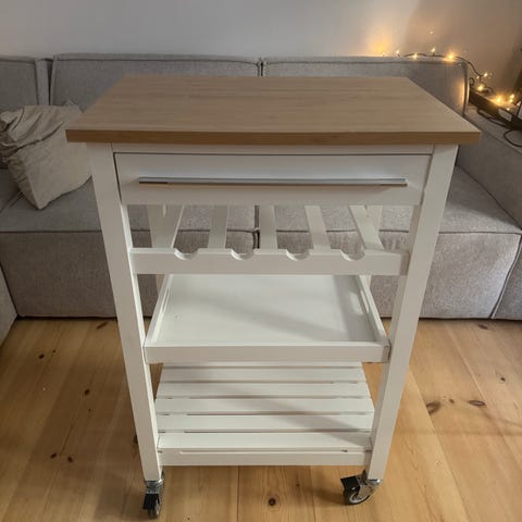 køkkenvogn/opbevaringsvogn med hjul hylder og skuffer træ eller bambus