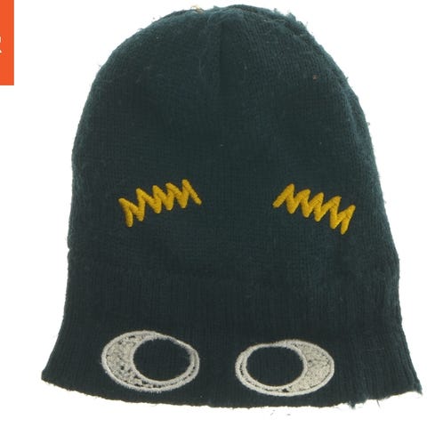 Elefanthue i blommefarvet uldstrik til fra Mini A Ture str. 116-122 (er meget stretchy og kan sagtens passe til et større barn).
