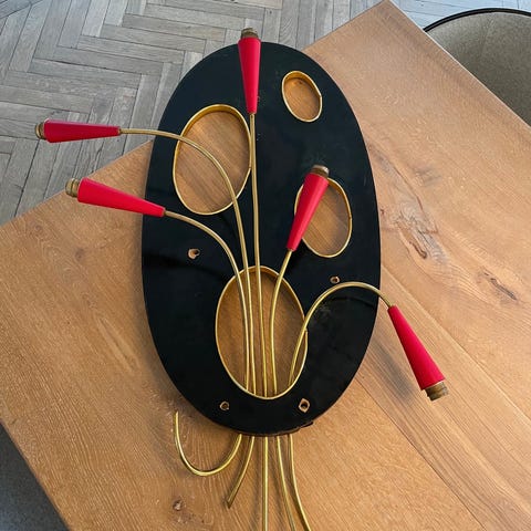Designet af Paul de Haan: Smuk bordlampe, model Sputnik 12. Forkromet metal med 12 lysarme og 13 spyd med kugler for enden. H. 59 cm. Diam. 35 cm.
