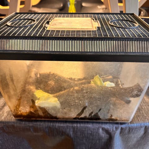 Mangler sand til nederst dele af myrefarm, hvor myrene kan bygge reden. Spidsekammerat i midten af farmen for at se dem spidse.