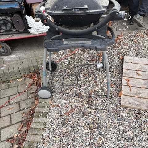 Webergrill med sammenklappelig pande der er nem at bruge, rengøringsbørste og evt grillstarter. Står pt I fjellerup med kam evt tages med til Odder.