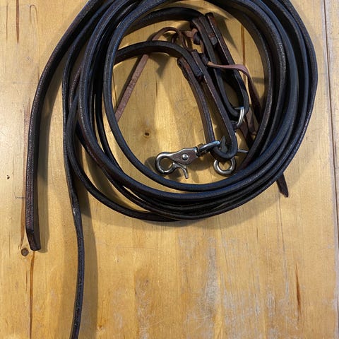 Helt ny ubrugt rund flettet læder tøjle. Hånd lavet af sadelmager, ca. str. cop farven er mørk kastanje.