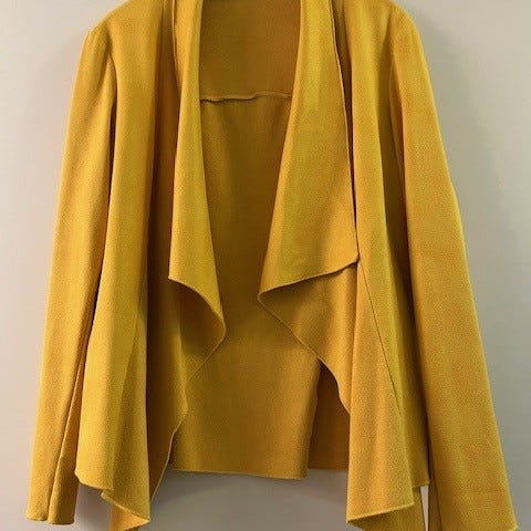 Gul jakke i faux ruskind. Fin stand, ikke brugt meget.