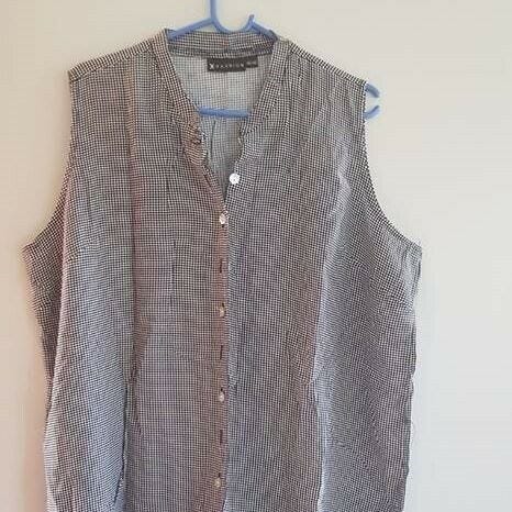 Ærmeløs skjorte fra Reserved. Skjorten har en hvid top, der gradvist skifter til en lyserød nuance ned mod bunden. Den har knapper hele vejen ned foran og en klassisk skjortekrave.