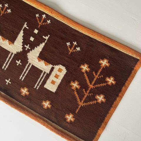 Unika vægtæppe i kelim. Mål inkl. frynser: 101 x 67 cm. 500,-. Sender gerne. #kelimtæppe #kelimvægtæppe #vintagevægtæppe #retrovægtæppe #kelim #loveretroaarhus