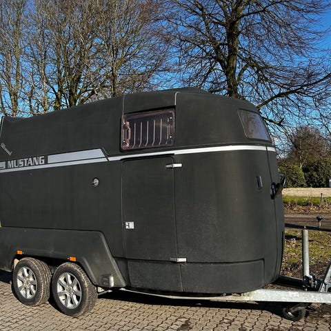 Brugt trailer i rigtig god stand, nyere dæk, nyt træk og påløbsbremse, pæn udvendig og indvendig, godt sadelrum, plus mindre rum indvendig